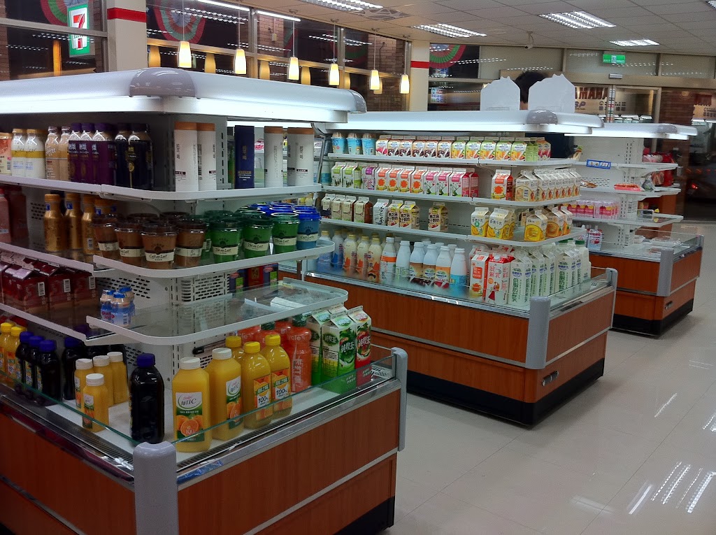 取消開放式的冷藏架改用三部「中島式冷藏櫃」雖然耗電量大增,但是民眾普遍比較喜歡這樣的購物方式(有點兩難的抉擇)